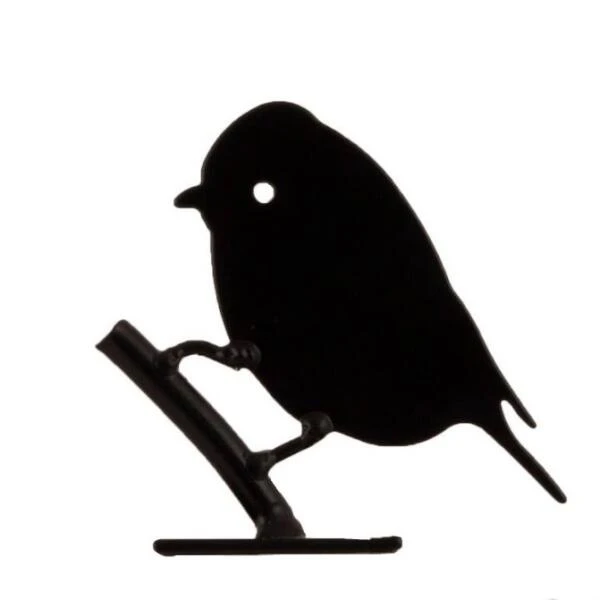 Levensgroot silhouet meesje. Decoratief en karakteristiek zwart schaduwbeeld van een pimpelmees. Het silhouet is vervaardigd van metaal bewerkt met een roestwerende, milieuvriendelijke zwarte verf.